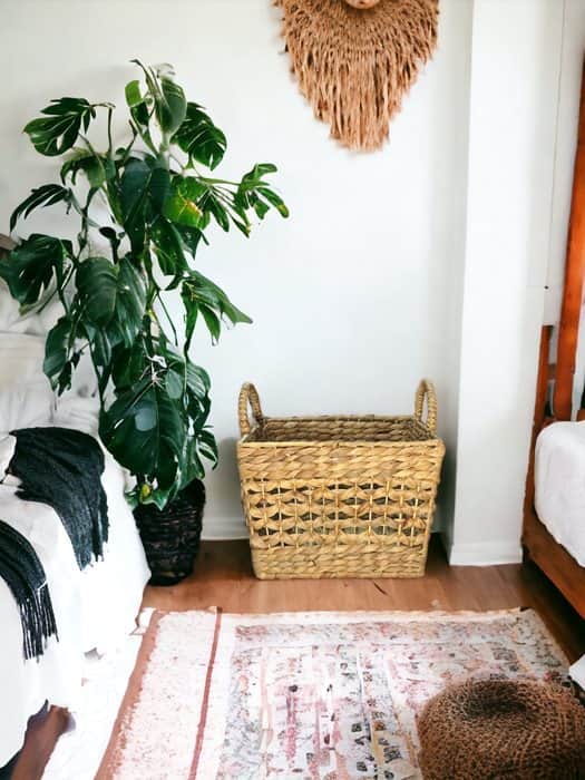 סל קש מרובע - השילוב המושלם בין שימושיות וקסם כפרי. סל זה עשוי מקש יקינטון המים ומגלם את תמצית הטבע תוך שמירה על חפציך מסודרים ומאורגנים. סל רב תכליתי זה נועד לייעל את היום יום שלך ומציע פתרון מסוגנן לאחסון. אידאלי לשמיכות, חדרי ילדים ועוד…